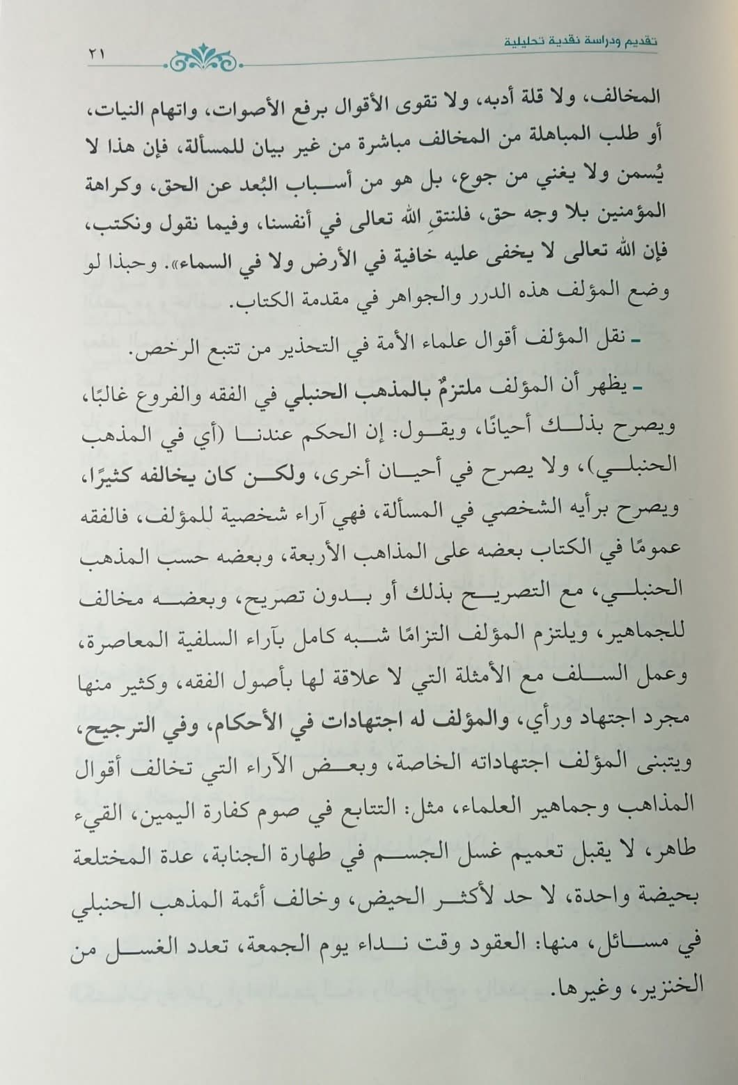 1. Penulis bermadzhab Hanbali, sebagaimanya dinyatakannya sendiri, tapi penulis cukup sering menyelisihi madzhabnya tersebut ketika menyajikan sekian persoalan, bahkan kadang menyelisihi jumhur ulama. Penulis hampir selalu mengikuti pandangan para ulama salafi kontemporer.