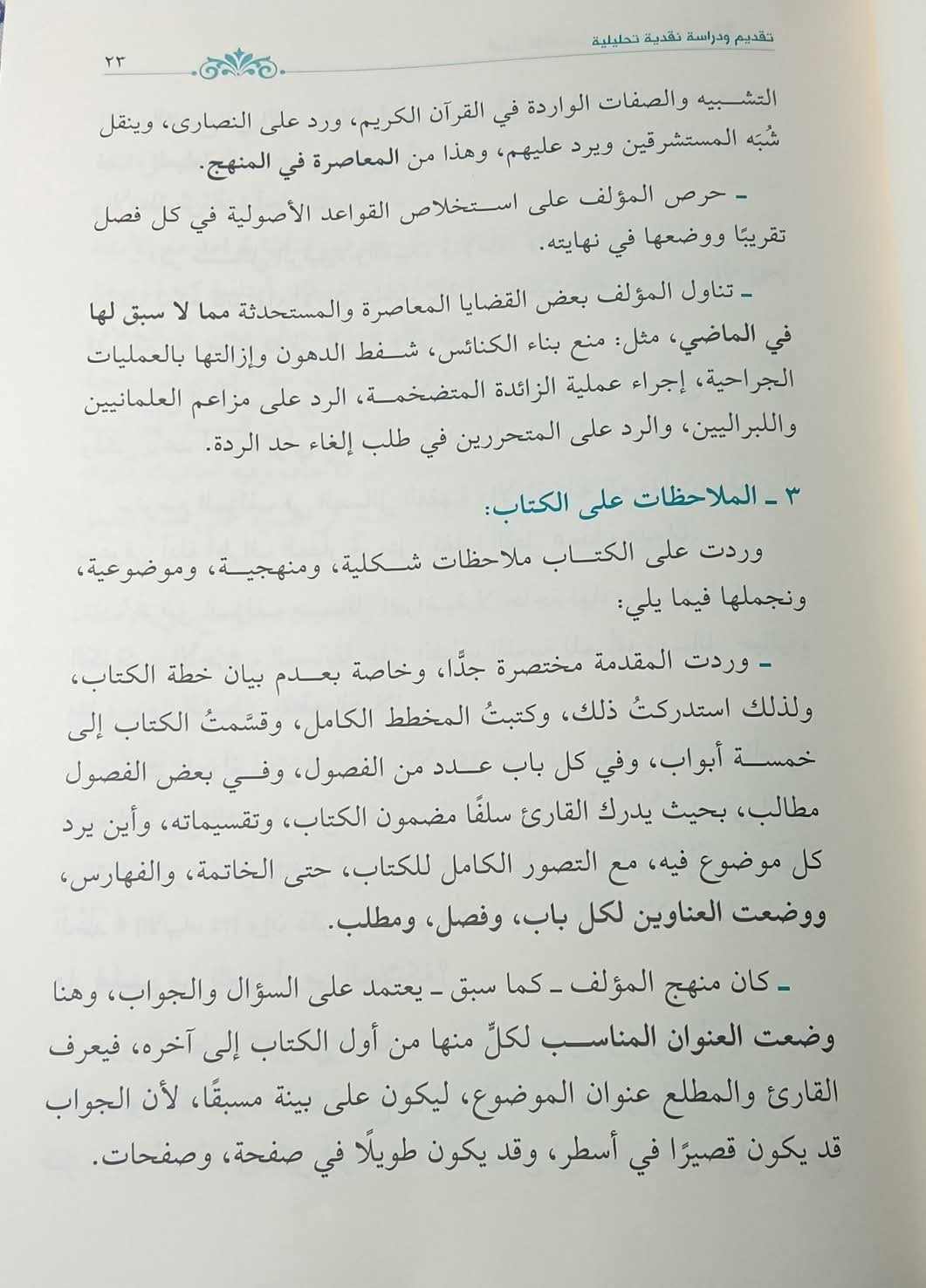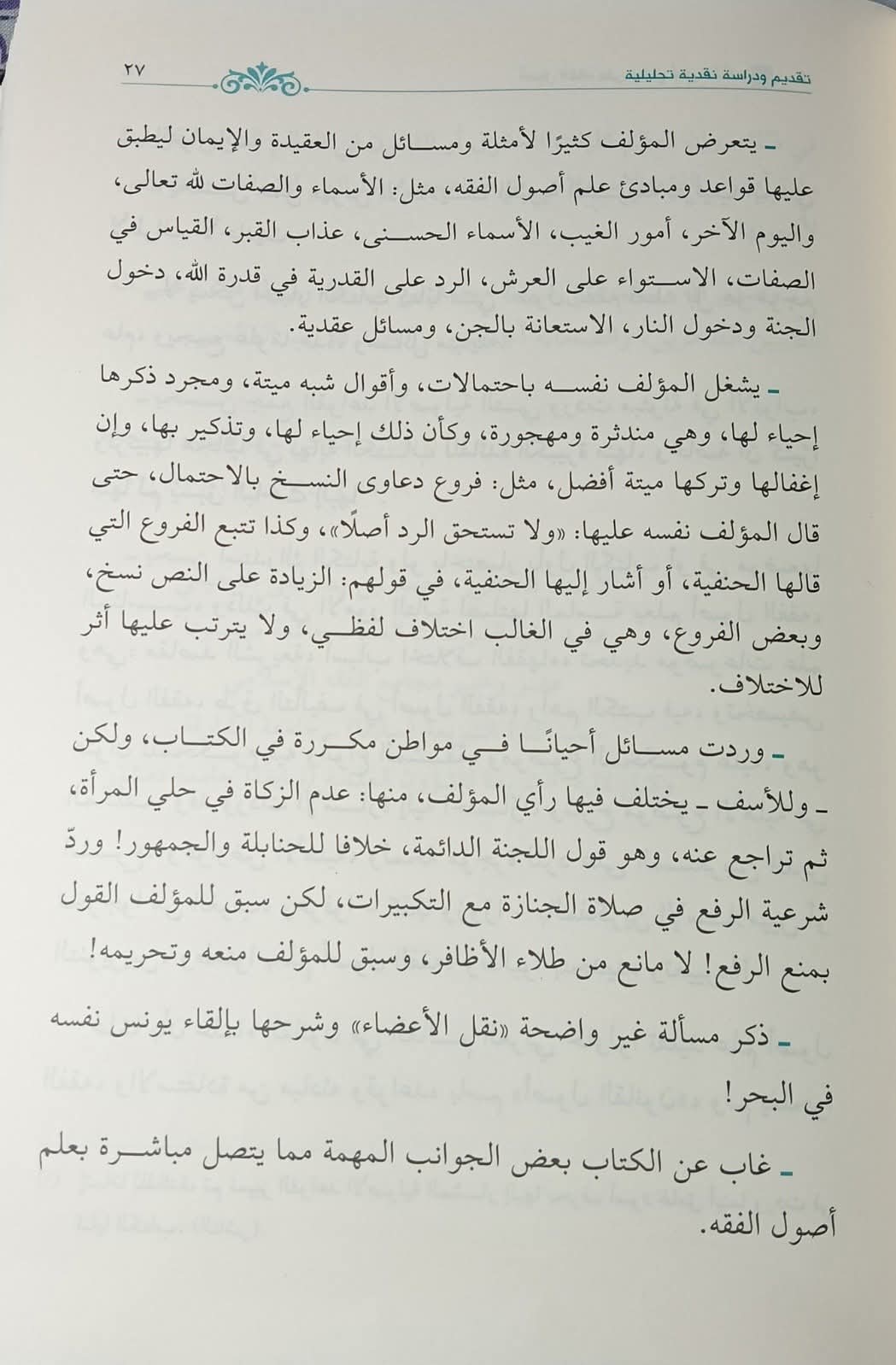 3. Penulis menyebutkan berbagai hukum terkait budak dan perbudakan, yang seharusnya tidak perlu disebutkan karena tidak ada faidahnya saat ini. Penulis juga menyebutkan persoalan-persoalan iftiradhiyyah (pengandaian) yang tidak dibutuhkan, seperti tentang adanya air di planet lain dan jenggot perempuan, serta persoalan khayali seperti setan yang lewat di depan orang yang sedang shalat.