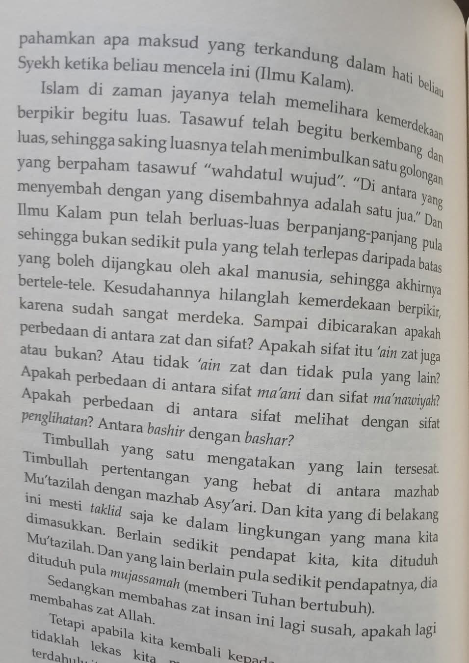 “Sehingga bukan sedikit pula yang telah terlepas daripada batas yang telah dijangkau oleh akal manusia, sehingga akhirnya bertele-tele. Kesudahannya hilanglah kemerdekaan berpikir, karena sudah sangat merdeka.”